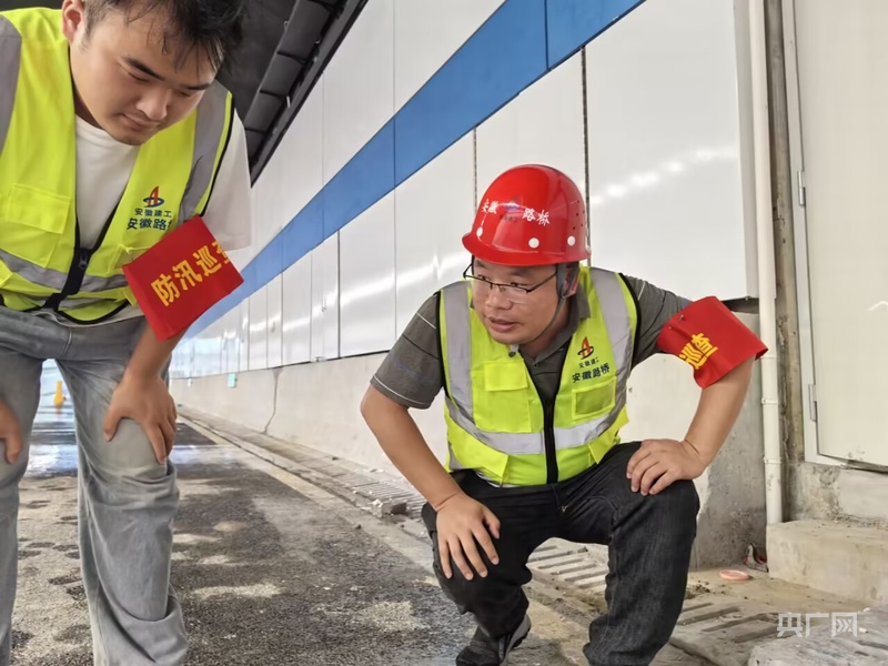 2024年,王。ㄓ遥┰诮鹫下1標檢查整體式排水溝(央廣網(wǎng)發(fā) 安徽建工路橋供圖)