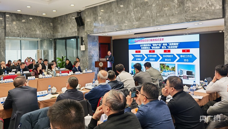 交通運輸部公路科學研究院副院長汪水銀作主旨報告(央廣網(wǎng)記者 龐婷 攝)