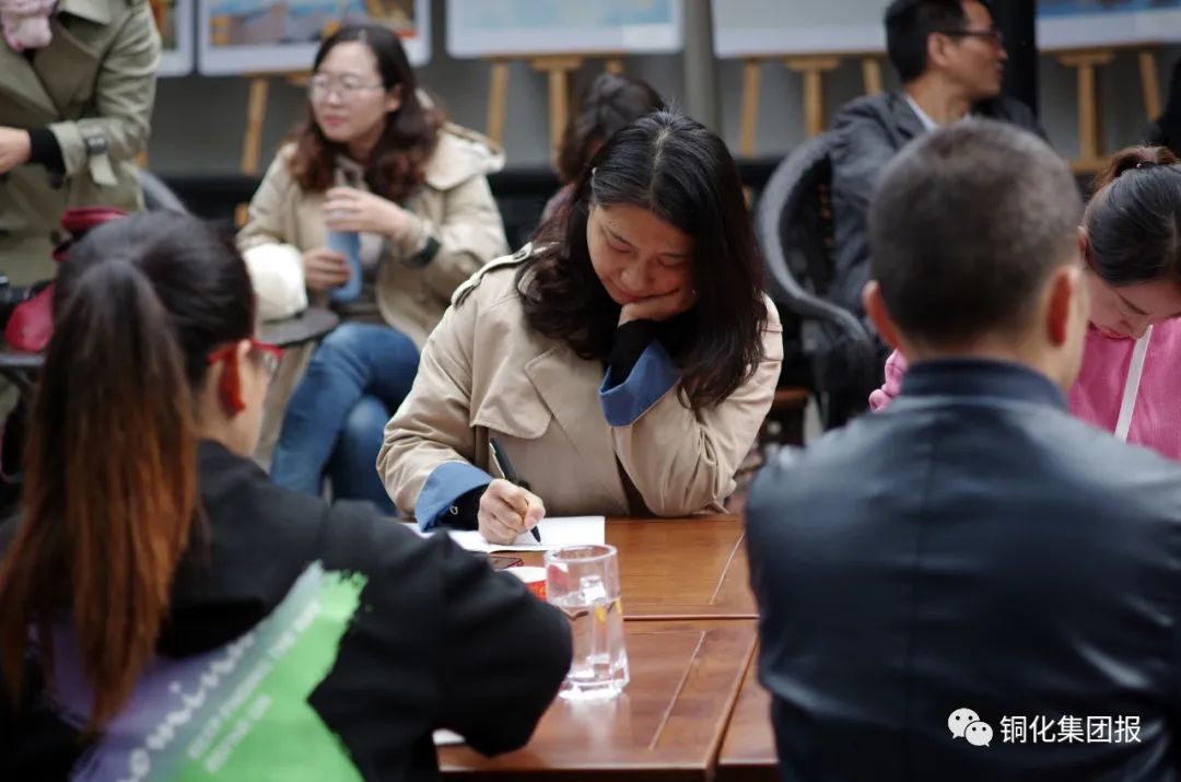 “好香啊,真是神仙處所!”“腦洞夠大呀,在這兒培訓(xùn)也是享受!”一進(jìn)門(mén),通訊員們便被書(shū)院典雅秋色和濃郁桂香所吸引,就連《銅陵日?qǐng)?bào)》與《銅化集團(tuán)》報(bào)的4位老師也忍不住贊嘆:“花香伴書(shū)香,確是看書(shū)、學(xué)習(xí)的佳境!”幾張小桌拼湊在院里的桂花樹(shù)下,小方凳圍坐一圈,培訓(xùn)班正式開(kāi)課。沒(méi)有電子屏,也沒(méi)有刻意準(zhǔn)備的課件,一縷花香,一杯清茶,拋開(kāi)拘謹(jǐn),“師生”促膝圍坐,開(kāi)啟了“嘮嗑”式培訓(xùn)。通訊員們把平時(shí)找新聞、寫(xiě)新聞過(guò)程中遇到的困惑、難事拿出來(lái)發(fā)問(wèn)求解,4位編輯老師也結(jié)合多年采、寫(xiě)、編經(jīng)驗(yàn)和現(xiàn)實(shí)所遇事例盡心為大家答疑解惑,通訊員們之間還結(jié)合自己見(jiàn)報(bào)之作分享了各自心得。