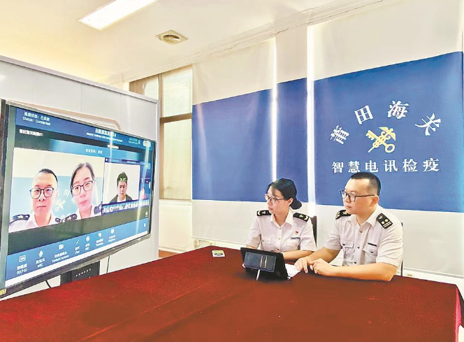 福州海關(guān)所屬莆田海關(guān)系全國首批運用智慧電訊檢疫模式的基層海關(guān)之一。該模式引入“便攜式遠程測溫流調(diào)儀”“頭戴式智能監(jiān)控儀”“移動作業(yè)終端”等智能化遠程監(jiān)管設(shè)備,通過口岸5G通信AI輔助識圖等手段,海關(guān)關(guān)員在辦公室即可遠程完成船員體溫監(jiān)測、流行病學(xué)調(diào)查、船舶衛(wèi)生監(jiān)督及后續(xù)檢疫監(jiān)管工作,無需現(xiàn)場登臨檢疫,極大節(jié)約企業(yè)時間成本,有效提升口岸通關(guān)效率。