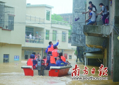 7日上午,南方日報(bào)記者在增城中新鎮(zhèn)九和村村口看到,路邊檔口多被水淹,村口停的小車“漂浮”在水里。據(jù)搶險(xiǎn)人員介紹,他們早上7時(shí)前到達(dá)現(xiàn)場時(shí),省道S118九和段已經(jīng)有500米道路阻斷。截至下午2時(shí),整個(gè)九和村的受災(zāi)點(diǎn)平均水深有1米多,多間泥磚房倒塌。鎮(zhèn)政府和三防成員單位出動(dòng)多臺沖鋒舟、橡皮艇進(jìn)行救援,成功轉(zhuǎn)移了豐鼎廠40名被困工人、九和小學(xué)10余名小孩等,同時(shí)通過兩臺大巴車轉(zhuǎn)移身體不適的受災(zāi)人員。