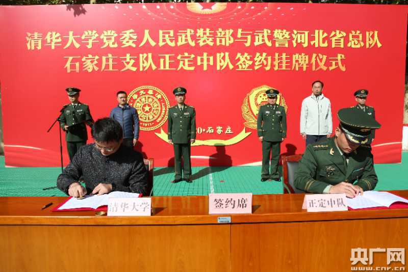 清華大學(xué)黨委武裝部和正定中隊簽約現(xiàn)場(央廣網(wǎng)發(fā) 武警正定中隊供圖)