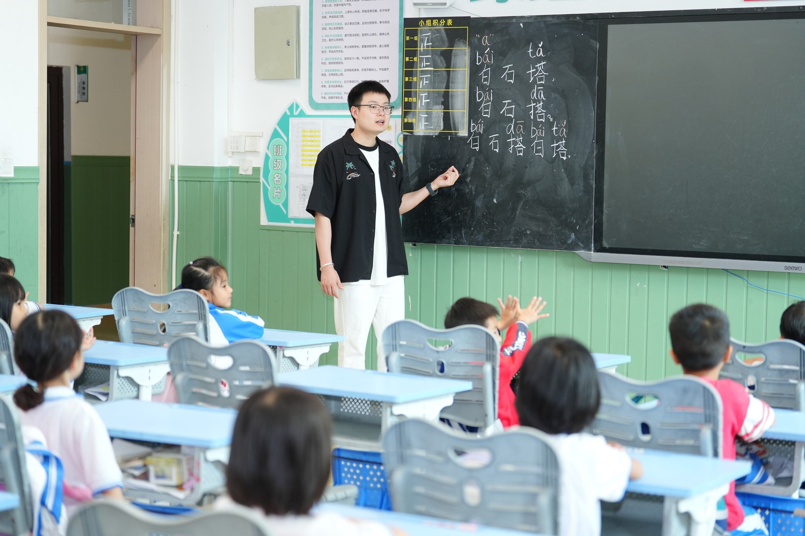 近百名小學(xué)生在趣味課堂中率先體驗(yàn)普通話的音韻之美。