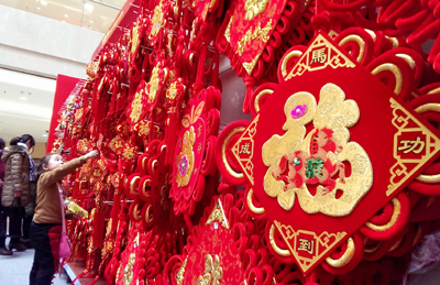 央廣網(wǎng)河南分網(wǎng)消息 據(jù)許昌網(wǎng)報道:1月15日,許昌市區(qū)胖東來時代廣場,喜慶的年飾用品吸引了一名小朋友的目光。近期,許昌市各大商場、超市推出寓意吉祥如意的新年飾品琳瑯滿目,年味兒十足,吸引了不少消費者前來選購。 記者 喬利峰 攝
