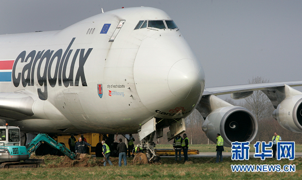 圖為2009年3月17日,一架盧森堡貨運(yùn)航空公司的波音747飛機(jī)停在荷蘭馬斯特里赫特的亞琛機(jī)場(chǎng)。