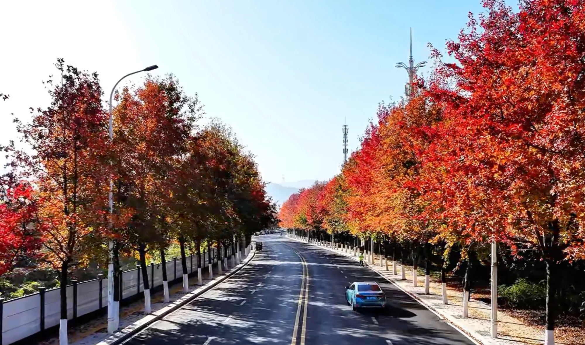 連日來,湖北咸寧咸安區(qū)南昌路社區(qū)孟養(yǎng)浩東路的秋日限定景觀迎來最佳觀賞期。道路兩側樹木層林盡染,紅、黃、綠三色枝葉交相輝映,宛如一條延伸向遠方的天然“畫廊”。