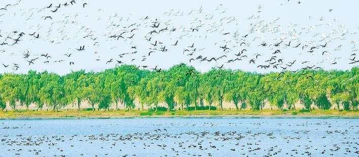 12月1日,武漢市東西湖區(qū)柏泉府河濕地天鵝湖,成群的候鳥在灘涂上翔集,形成一幅山水人城和諧相融的生態(tài)畫卷。近年來,東西湖區(qū)持續(xù)推進(jìn)府河濕地環(huán)境保護(hù),去年同期來的越冬候鳥1萬余只,今年目前就有2萬多只,預(yù)計(jì)月底將達(dá)3萬多只,而且種類由以往的20多種增加到40多種,小天鵝、白琵鷺等珍稀物種數(shù)量顯著增加。(視界網(wǎng) 郭賢樂 攝)