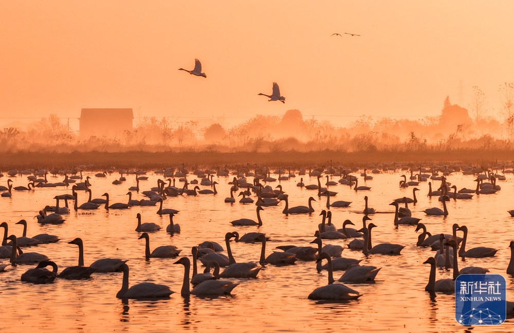 12月6日在湖南省岳陽市屈原管理區(qū)東古湖濕地拍攝的小天鵝。