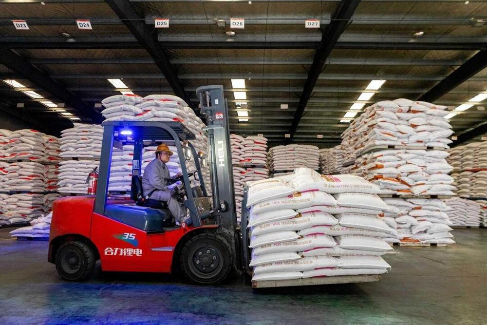 正大衡陽公司倉庫,工作人員正在運送飼料。