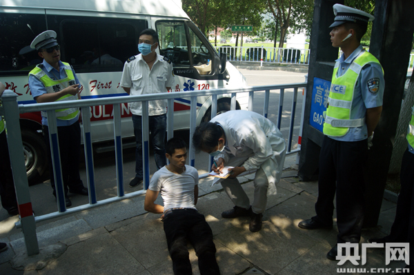 當(dāng)天下午13時(shí)許,南昌市交管局高新大隊(duì)一中隊(duì)組織警力在高新五路路口設(shè)卡查酒駕。當(dāng)一輛白色奇瑞小車從火炬大街由西往南右拐駛?cè)敫咝挛迓窌r(shí),司機(jī)見到前方交警設(shè)卡檢查,立即停下,數(shù)秒鐘后車輛緊急調(diào)頭。此時(shí),控制信號(hào)燈的上官文輝警官見此異常,立即通知前方設(shè)卡同事對該輛“問題車”進(jìn)行攔截檢查。由于前后都有車輛,男子在剮蹭了兩輛正常行駛車輛后,隨即棄車而逃。