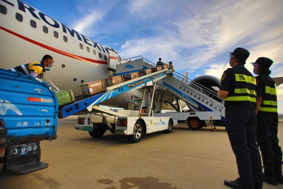 △5月31日,一批防疫物資采用“提前申報,機坪查驗”的模式出口南非。