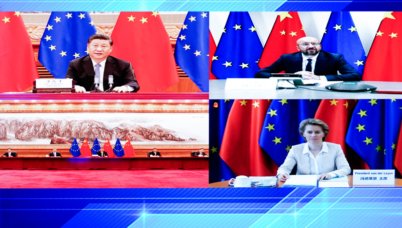 △國家主席習近平在北京以視頻方式會見歐洲理事會主席米歇爾和歐盟委員會主席馮德萊恩。