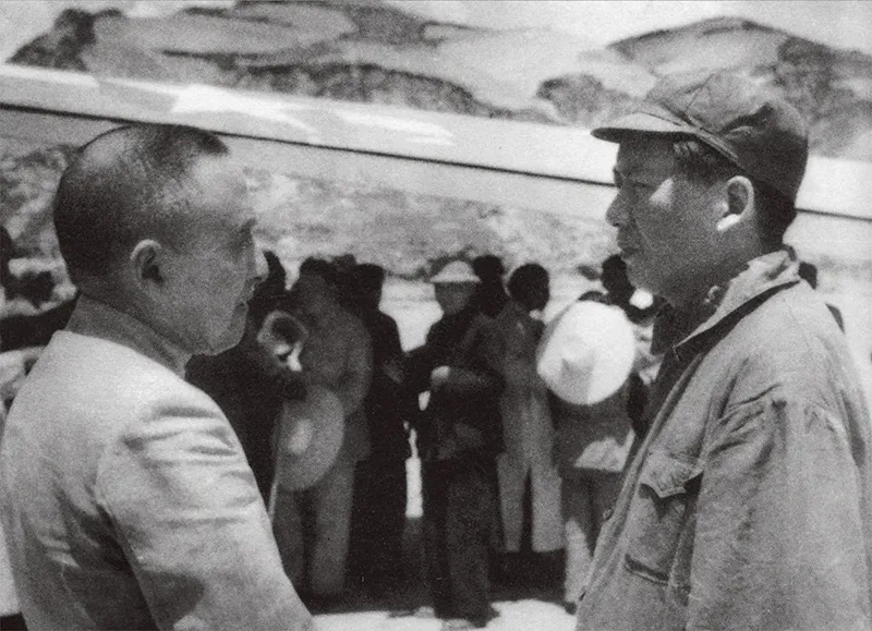 習(xí)近平總書記多次提及1945年毛澤東和黃炎培在延安窯洞關(guān)于歷史周期率的對(duì)話,指出這番對(duì)話至今對(duì)中國(guó)共產(chǎn)黨都是很好的鞭策和警示,強(qiáng)調(diào)要著力解決好“其興也勃焉,其亡也忽焉”的歷史性課題,增強(qiáng)黨自我凈化、自我完善、自我革新、自我提高能力。圖為毛澤東與黃炎培在延安機(jī)場(chǎng)交談。