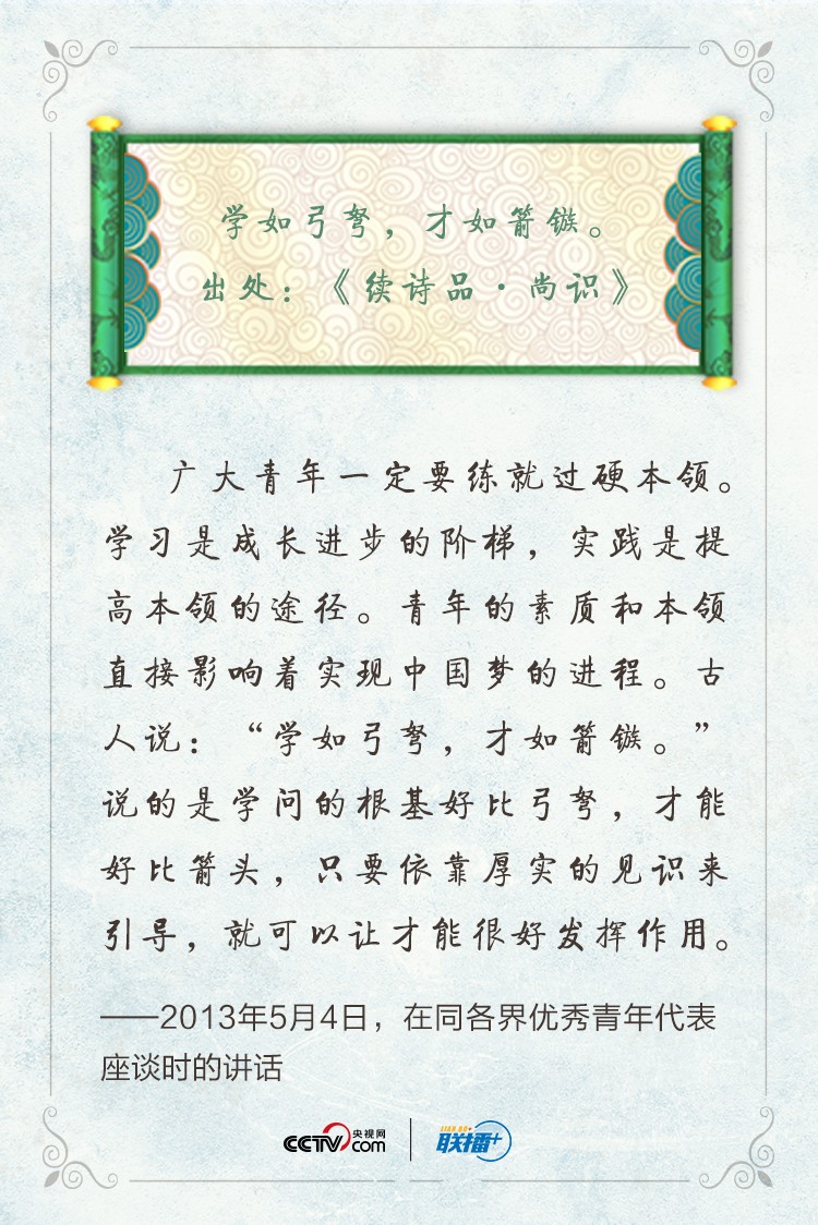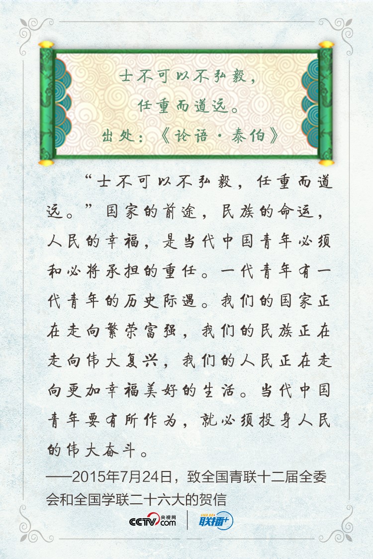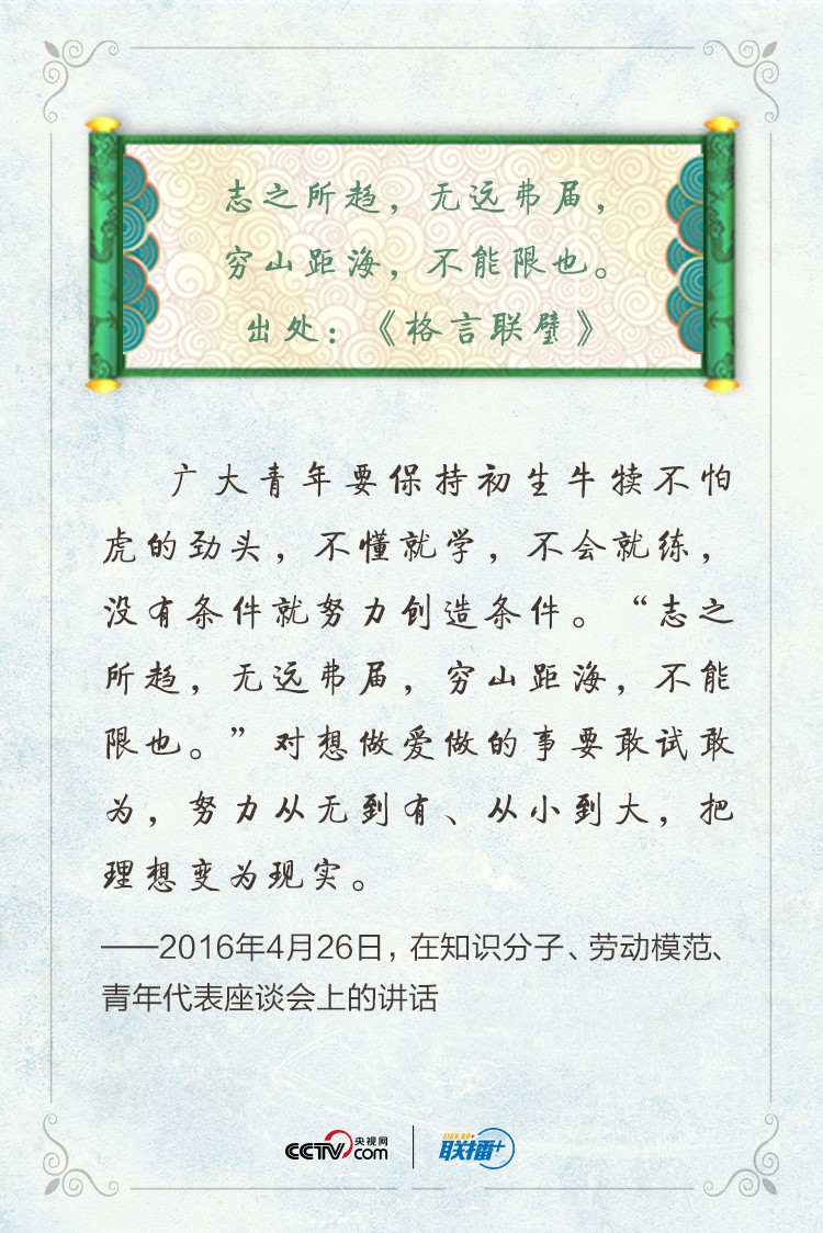 青年興則國家興,青年強則國家強。黨的十八大以來,習近平總書記在同青年談心、給青年回信、參加青年活動時多次引用古文詩句勉勵青年,為青年走好人生路提供強大精神指引。央視網(wǎng)《聯(lián)播+》特梳理,與您共同感悟習近平總書記對青年的深情寄望。