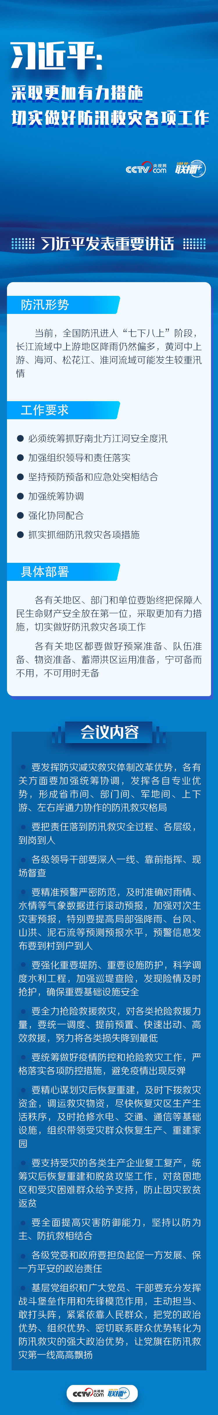 7月17日,習(xí)近平總書記主持中共中央政治局常務(wù)委員會會議,分析了當(dāng)前防汛形勢,并對防汛救災(zāi)工作作出具體部署。央視網(wǎng)《聯(lián)播+》特進(jìn)行梳理,共同凝聚抗洪救災(zāi)的強(qiáng)大力量。