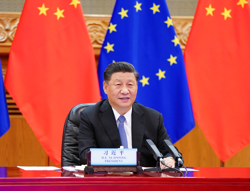 2020年6月22日晚,國家主席習(xí)近平在北京以視頻方式會見歐洲理事會主席米歇爾和歐盟委員會主席馮德萊恩。新華社記者 謝環(huán)馳 攝