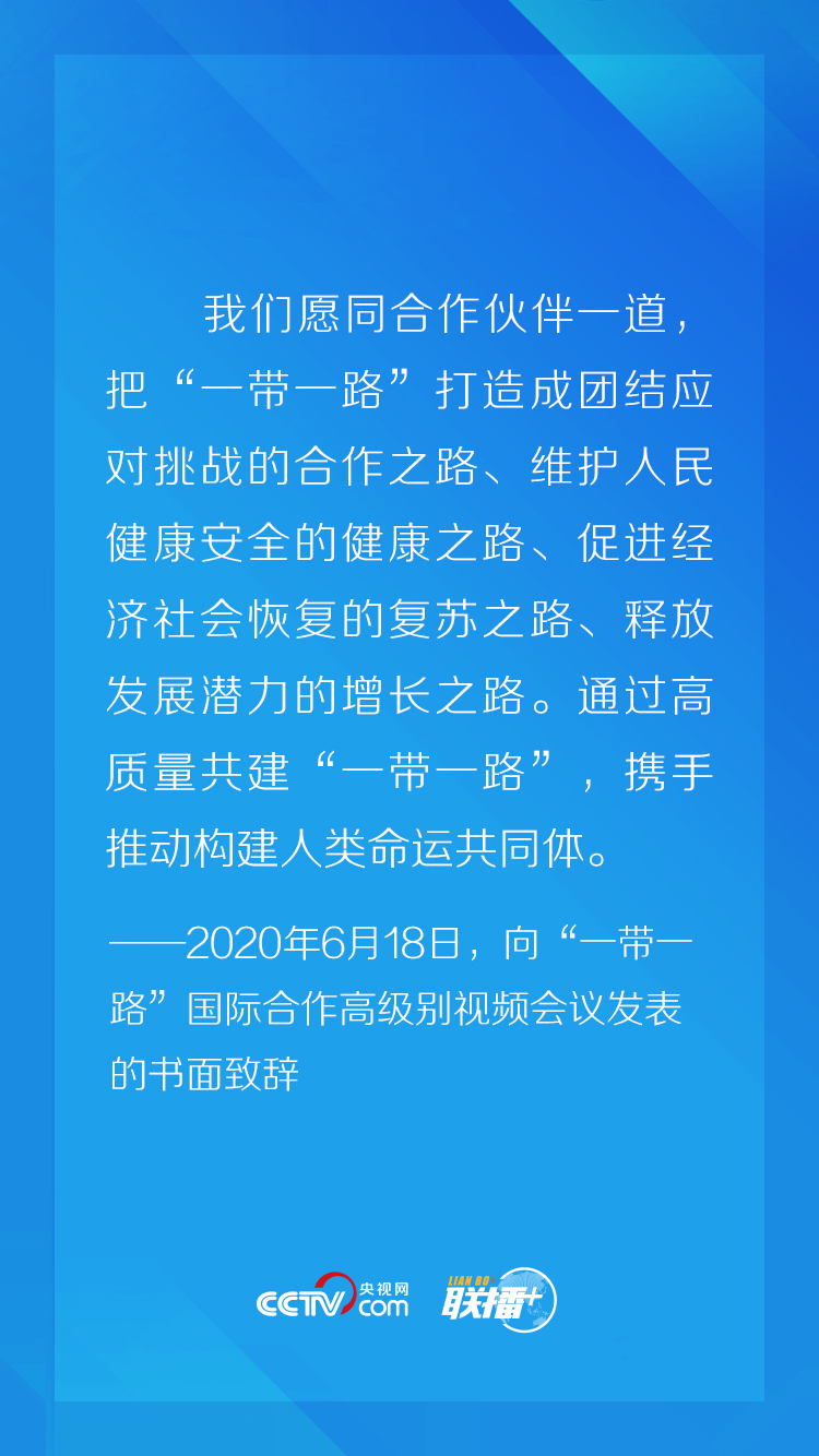 “無論是應(yīng)對疫情,還是恢復(fù)經(jīng)濟,都要走團結(jié)合作之路,都應(yīng)堅持多邊主義。促進互聯(lián)互通、堅持開放包容,是應(yīng)對全球性危機和實現(xiàn)長遠發(fā)展的必由之路,共建‘一帶一路’國際合作可以發(fā)揮重要作用。”