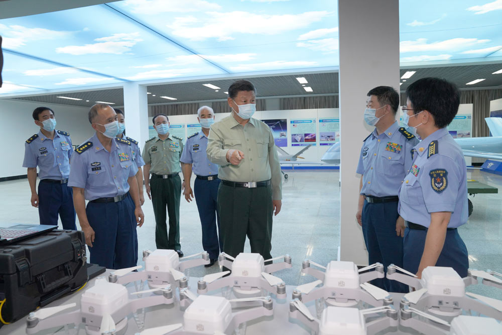 △習(xí)近平察看無人機(jī)操控教學(xué)設(shè)施,了解無人機(jī)操控員培養(yǎng)情況