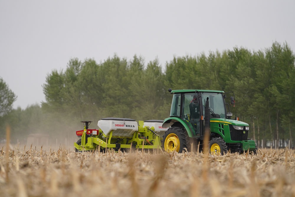 ▲2020年5月7日,在吉林省四平市梨樹縣,農(nóng)民駕駛免耕播種機播種玉米。