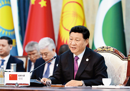 2019年6月14日,國家主席習(xí)近平在吉爾吉斯斯坦首都比什凱克出席上海合作組織成員國元首理事會第十九次會議并發(fā)表重要講話。 新華社記者 丁林/攝