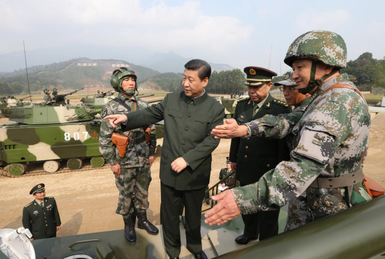 2012年12月10日,習(xí)近平在廣州軍區(qū)某部訓(xùn)練場,登上兩棲突擊車了解裝備情況