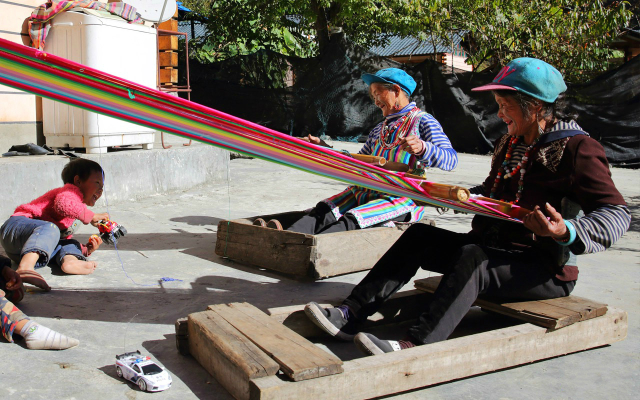 △獨龍族紋面女在織當地特有的獨龍?zhí)骸?/p>