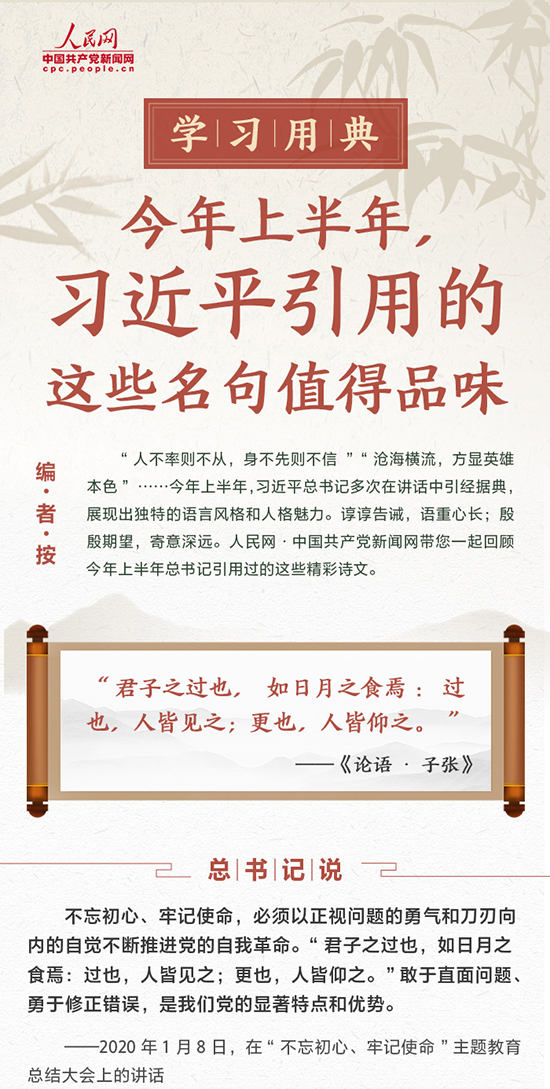 今天讓我們關(guān)注總書記上半年講話中引用的名句。