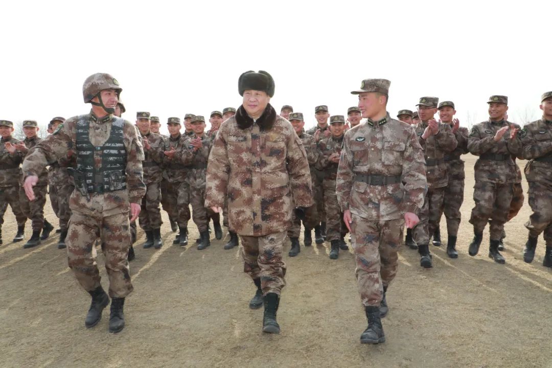 2018年1月3日,中共中央總書(shū)記、國(guó)家主席、中央軍委主席習(xí)近平視察中部戰(zhàn)區(qū)陸軍某師。這是習(xí)近平同該師偵察英雄楊子榮生前所在連官兵親切交談。新華社記者 李剛 攝