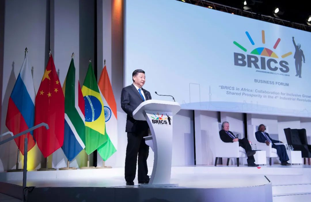 2018年7月25日,國(guó)家主席習(xí)近平應(yīng)邀出席在南非約翰內(nèi)斯堡舉行的金磚國(guó)家工商論壇,并發(fā)表題為《順應(yīng)時(shí)代潮流 實(shí)現(xiàn)共同發(fā)展》的重要講話。新華社記者 李濤 攝