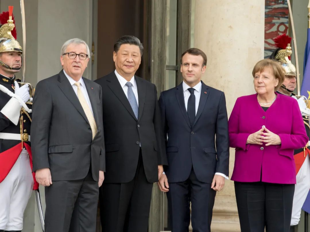 2019年3月26日,國(guó)家主席習(xí)近平在法國(guó)巴黎同出席中法全球治理論壇閉幕式的法國(guó)總統(tǒng)馬克龍、德國(guó)總理默克爾和歐盟委員會(huì)主席容克舉行會(huì)晤。新華社記者 高潔 攝
