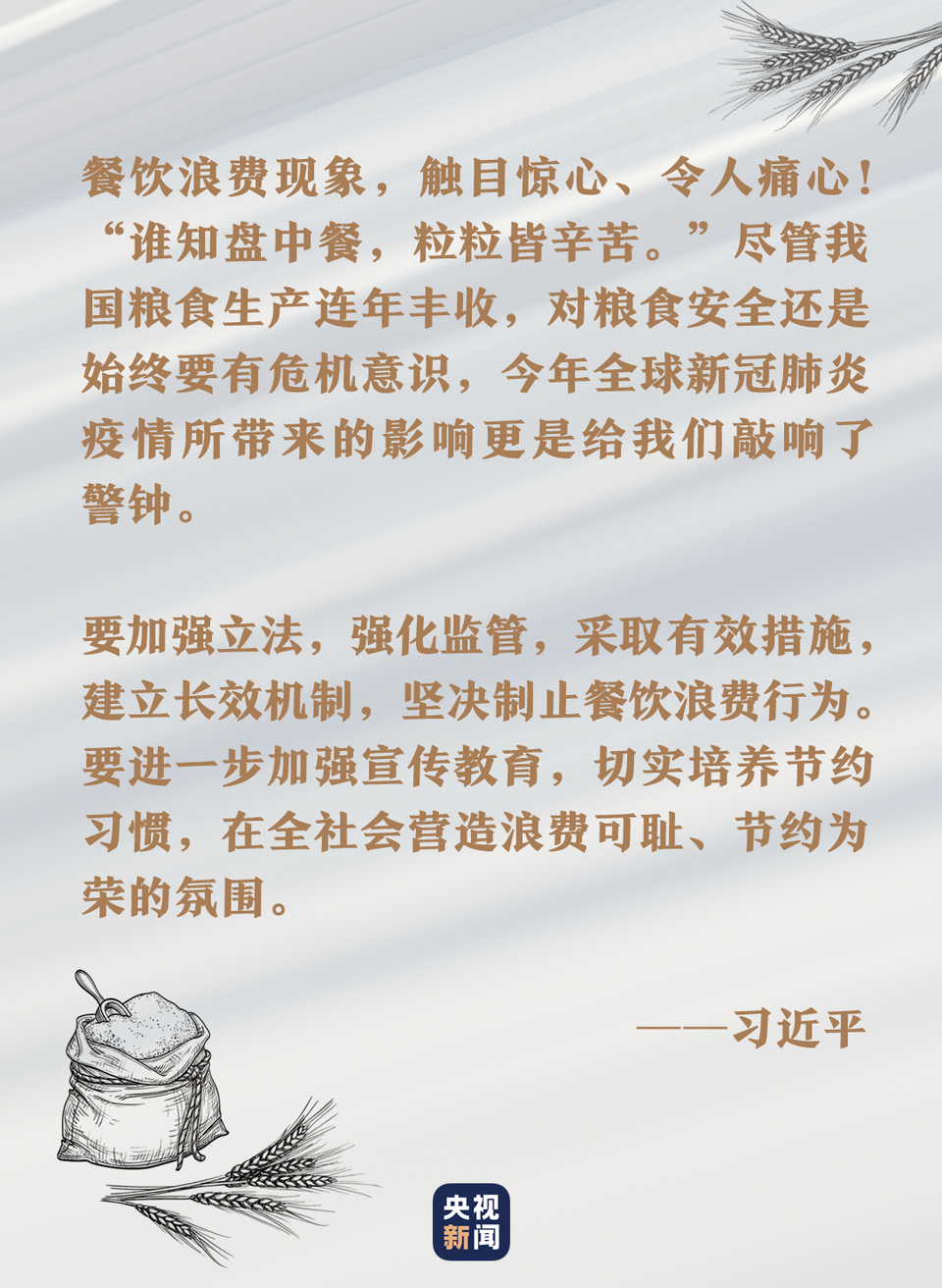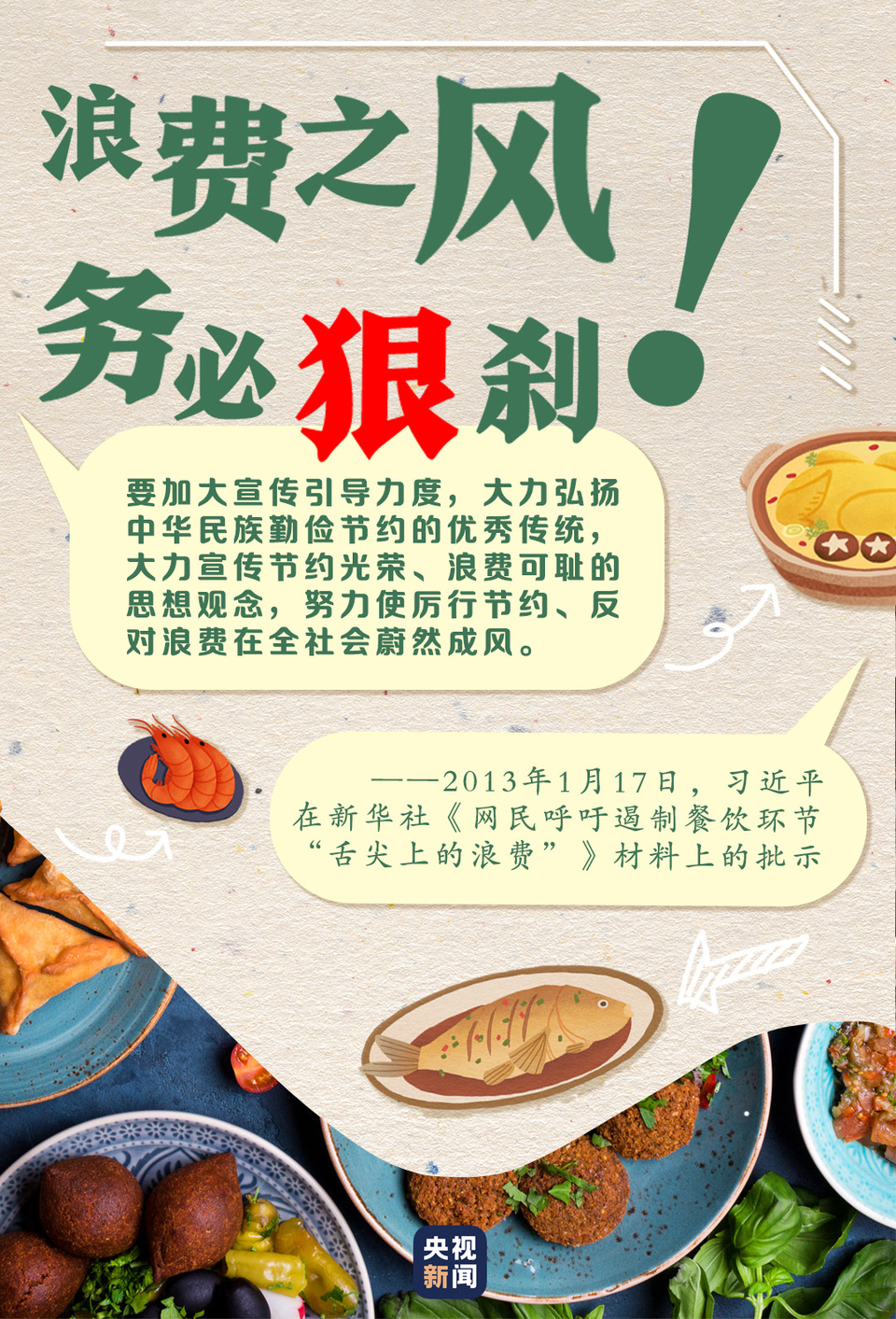 近日,習近平總書記對制止餐飲浪費行為作出重要指示強調,堅決制止餐飲浪費行為。
