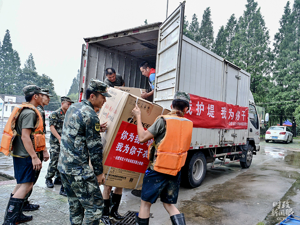△7月24日,解放軍某部官兵緊急增援巢湖大堤。