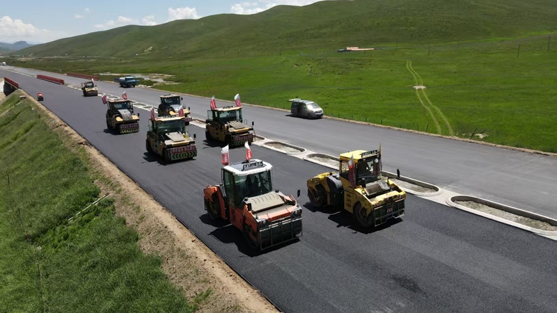 同賽項(xiàng)目同仁至西卜沙、麥秀至賽爾龍段年度通車段路面工程實(shí)現(xiàn)貫通