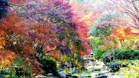 初冬的青島中山公園,楓林澗藏著最濃烈的秋意余韻。