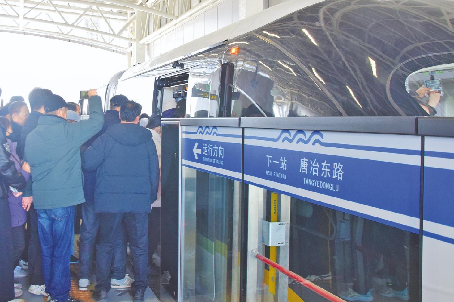濟南云巴通車首日 “嘗鮮”市民排起隊