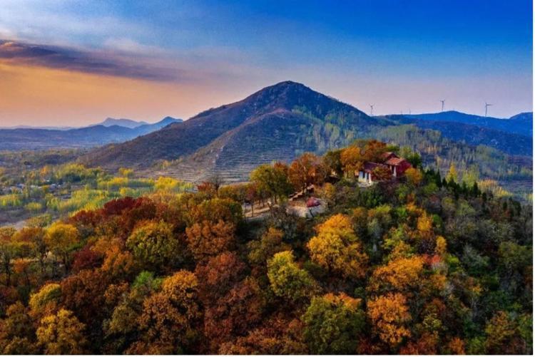 秋季的磁山,盛滿了深秋的韻律,漫山紅葉似染布,輔以青松綠、銀杏黃、天空藍。