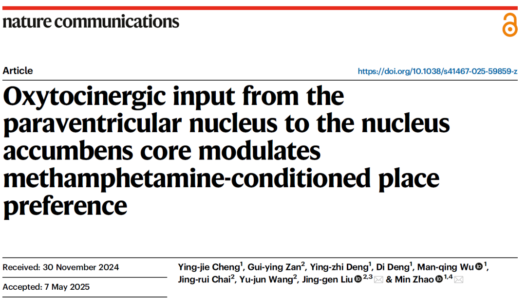 600號科教前沿 | 趙敏團(tuán)隊(duì)聯(lián)合中科院上藥研究所劉景根團(tuán)隊(duì)發(fā)現(xiàn)催產(chǎn)素能有效阻斷甲基苯丙胺獎賞效應(yīng)