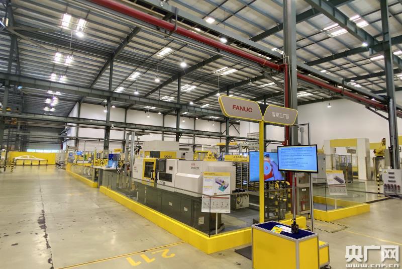 發(fā)那科機(jī)器人系統(tǒng)展示場(chǎng)智能工廠區(qū)(央廣網(wǎng)記者 唐奇云 攝)