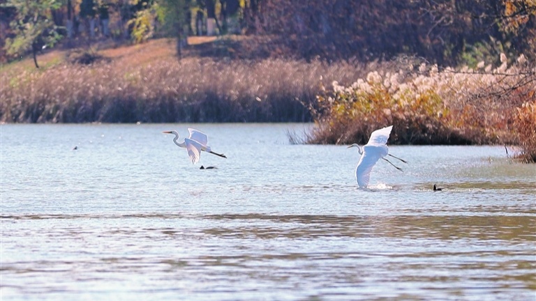 山西太原汾河濕地公園內(nèi)白鷺翩翩起舞,構(gòu)成一幅和諧美麗的生態(tài)畫(huà)卷。