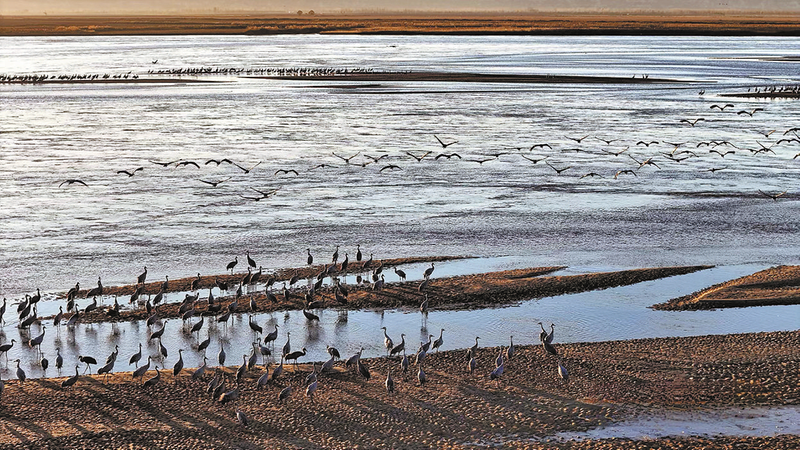 除了常住居民白鷺、綠頭鴨等留鳥外,一群群天鵝、大雁等候鳥翩躚而至,它們或在水面嬉戲、或在沙洲休憩、或在空中盤旋,為母親河增添了無限生機(jī)。