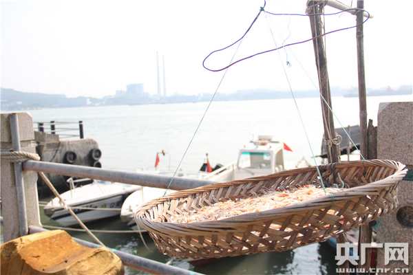 臺(tái)風(fēng)“天鴿”逼近廣東,受臺(tái)風(fēng)環(huán)氣流影響,汕頭地區(qū)氣流下沉,天氣悶熱。媽嶼島上漁民晾曬的蝦干。劉建高 攝