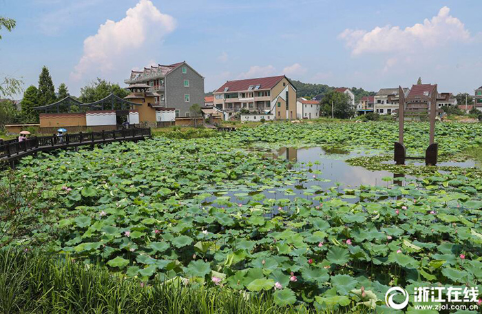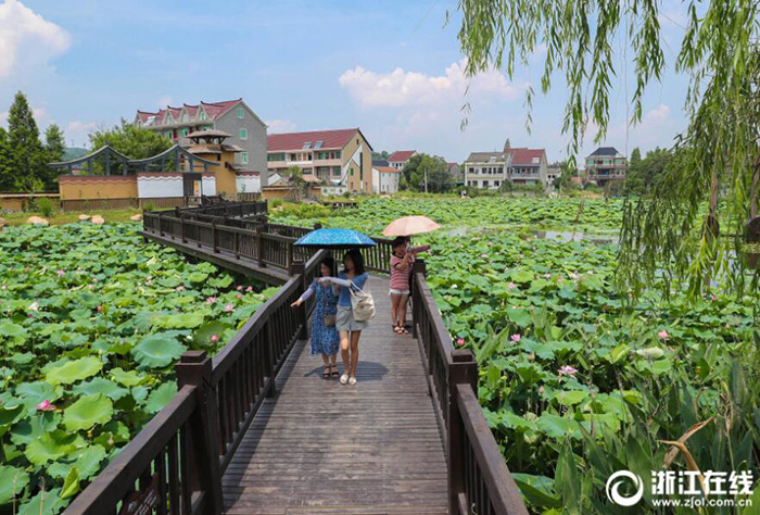 7月25日,在湖州德清下渚湖街道沿河村的小公園,廊橋、荷花、游步道相互映襯,猶如一張美麗的鄉(xiāng)村畫卷。