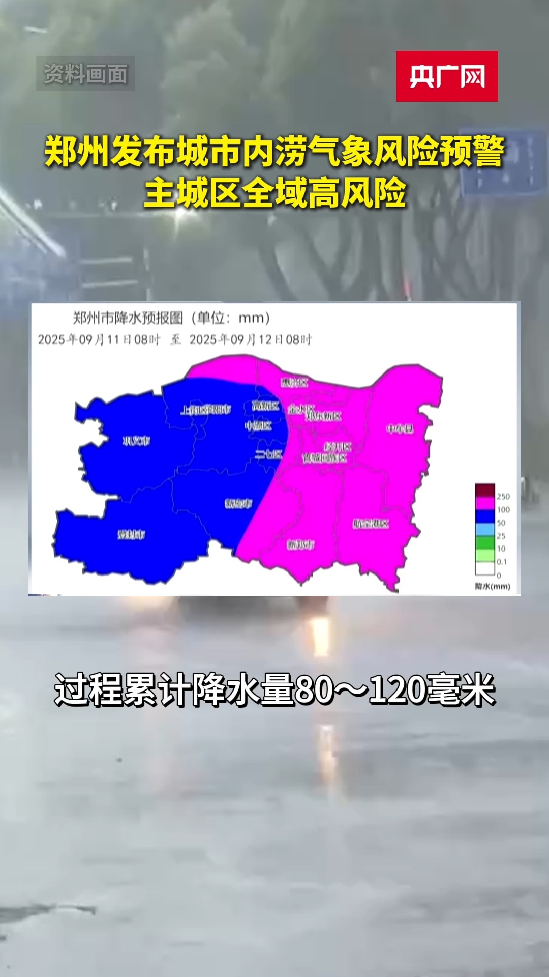 鄭州發(fā)布城市內(nèi)澇氣象風(fēng)險(xiǎn)預(yù)警 主城區(qū)全域高風(fēng)險(xiǎn)